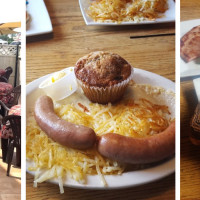 Select from ham, bacon, sausage or German sausage. Served with hash browns and a choice of the side
