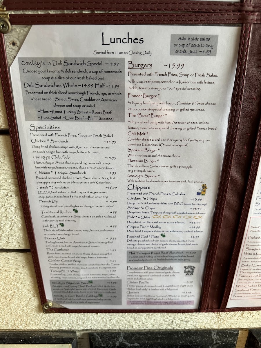 Welcome to Conley's Place Restaurant, a charming eatery located at 12622 E Sprague Ave, Spokane Valley. This beloved spot offers a diverse menu that perfectly blends traditional Irish fare with American classics, ensuring there’s something for everyone.