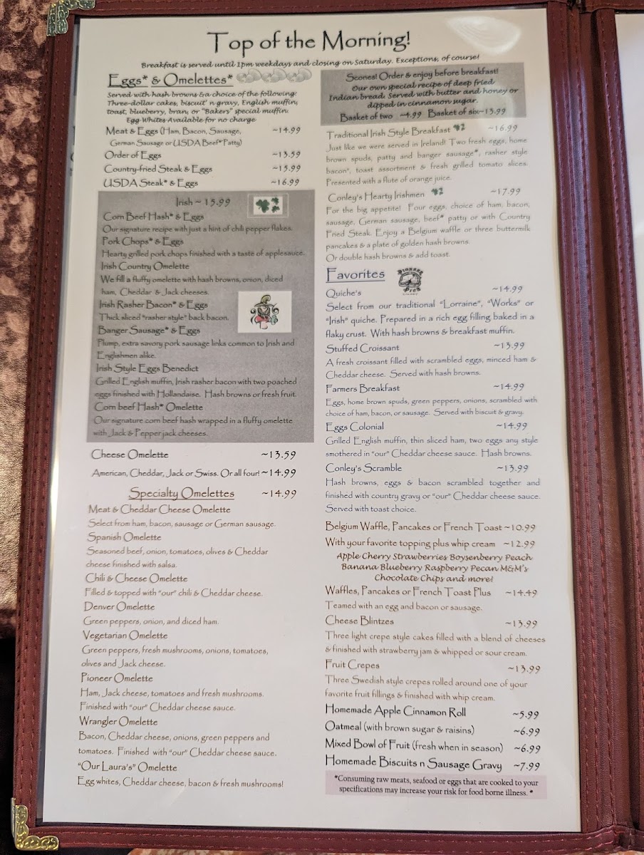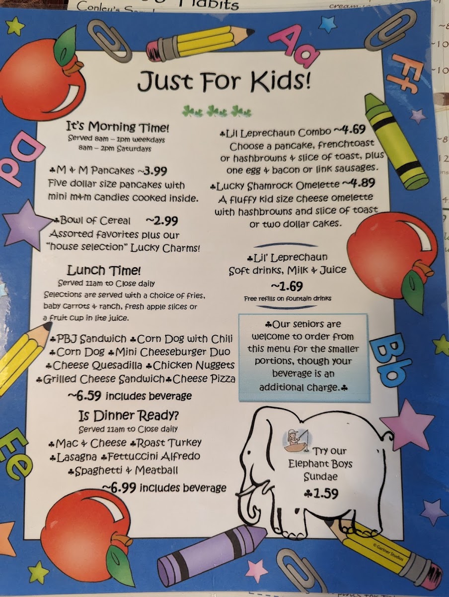 Kids are well catered for too, with options like Kids Cheese Quesadilla and Kids Corn Dog. Don’t forget to try their delicious drinks, like the alluring Conley's Coffee. The friendly staff and cozy atmosphere make every visit feel like home. You won’t regret stopping by!